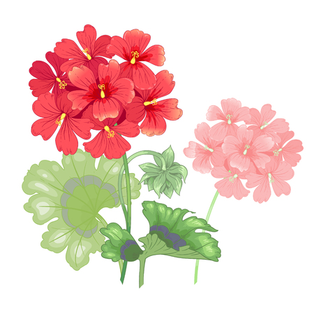 ゼラニウムの花が白い背景で隔離のベクター イラストです ビクトリア朝様式のヴィンテージ 衣料品 カード 結婚式招待状 お祝いの言葉 植物テキストに印刷する花柄のデザイン のイラスト素材 ベクタ Image